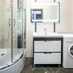 Το διαμέρισμα διαθέτει κουζίνα με ηλεκτρικό βραστήρα, πλυντήριο πιάτων και καφετιέρες / τσαγιέρες.Αυτό το διαμέρισμα βρίσκεται κοντά στο σταθμό τρένων Λβιβ.